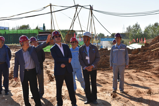 9月27日,王廣生副市長蒞臨老虎沖生活垃圾焚燒發(fā)電廠施工現(xiàn)場視察指導(dǎo)工作,集團(tuán)董事長董強(qiáng)同志介紹項(xiàng)目進(jìn)展情況。