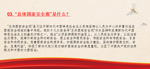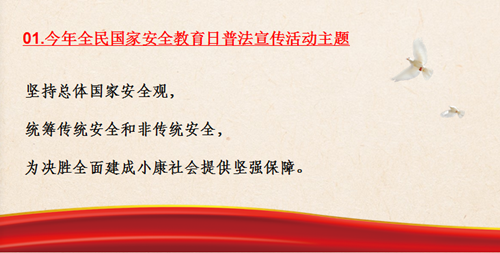 今天是我國第五個全民國家安全教育日,實現(xiàn)中華民族偉大復(fù)興的中國夢,保證人民安居樂業(yè),國家安全是頭等大事?!翱傮w國家安全觀”是什么,今年的活動主題是什么?速來了解。
